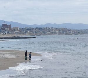 なななんと、この寒い中、子供たちは波打ち際で波と追いかけっこ。よく見ると、海の中に落ちている海藻を拾おうと波が引けたときに走って海に向かっていっている!(O_o)